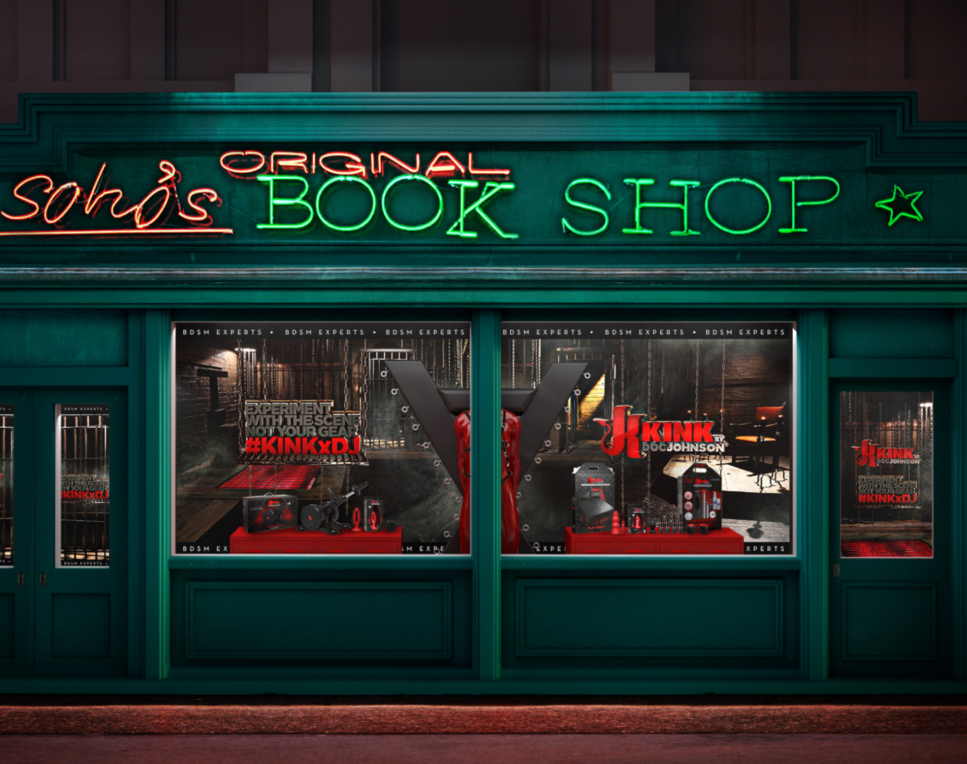 Window Storefront Design for KINK product line. Soho's Original Book Shop in London.